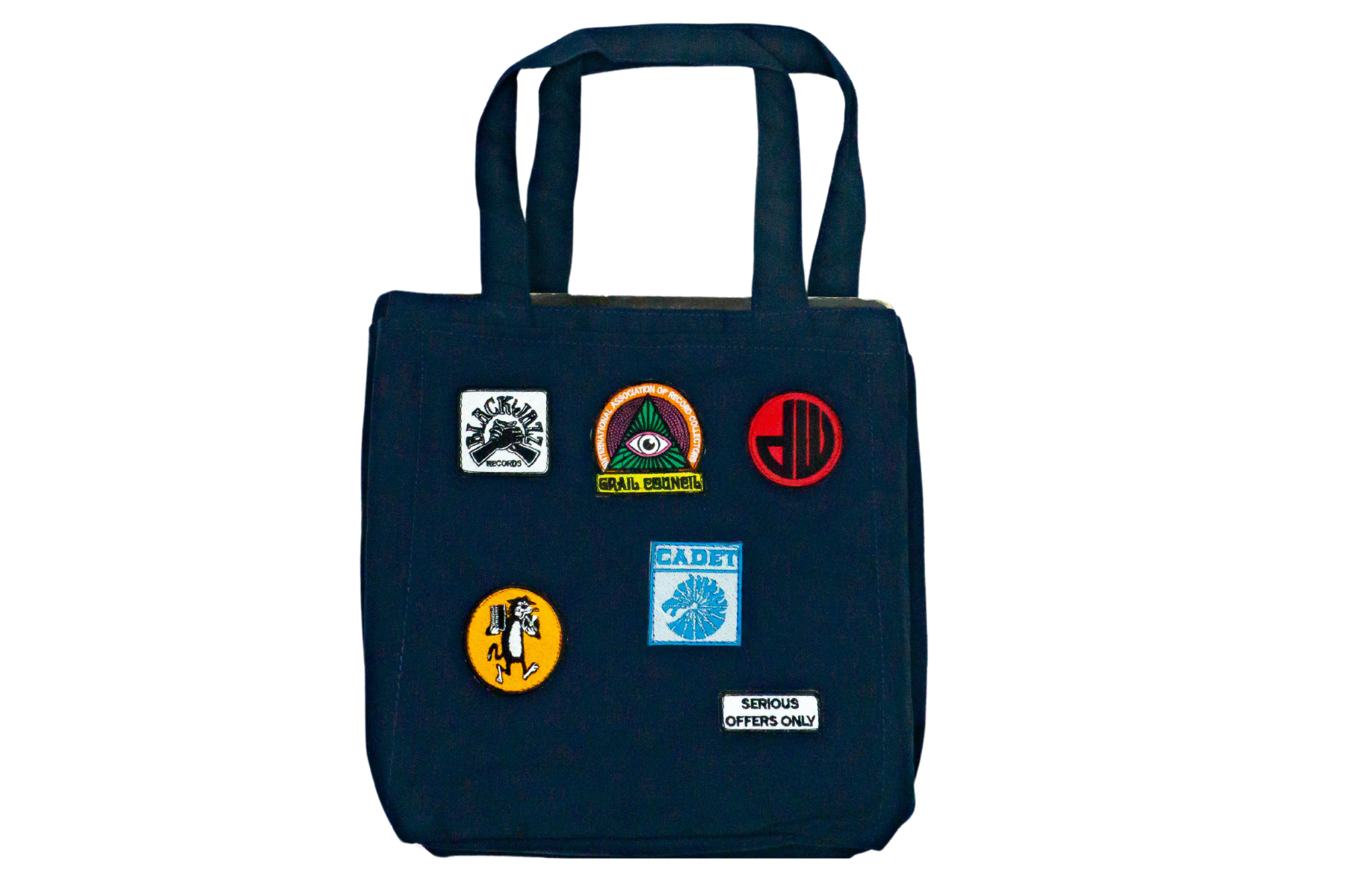 Stay organized and stylish on the go with the ROOSEVELT ERA TOTE. This tote was designed for the Live Convention record show in Toronto and features two unique colors with vintage patches depicting icons inspired by the legendary record shows at The Roosevelt Hotel NYC in the 1990s. Limited to 50 pieces, these were only available at the sale. The remaining stock is limited, and this edition will not be reproduced. With a roomy main chamber, two side pockets, and additional compartments, you can easily carry all of your essentials including up to 30 vinyl records and your laptop. Perfect for the music shopper on the move looking for grails along the way.